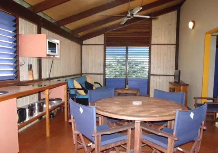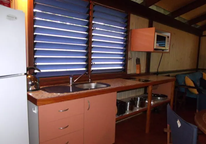 Nestled with five other beachfront dwellings, spread over 2,000m2 you'll find this two bedroom rustic timber bungalow with high raked ceilings and polished concrete floors. Lifestyle dictates easy living with open plan for the kitchen / dining / living area. The bedrooms are connected via a three-way bathroom with an internal laundry.