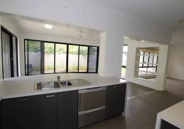 An oversized island bench has been added to the kitchen, it's complete with a double draw dishwasher and has a servery leading out to the entertainment area - It was once an outdoor area but has been fully enclosed with glass sliding doors and crimsafe screening so you can use anytime of the year.