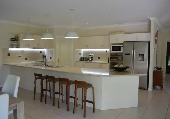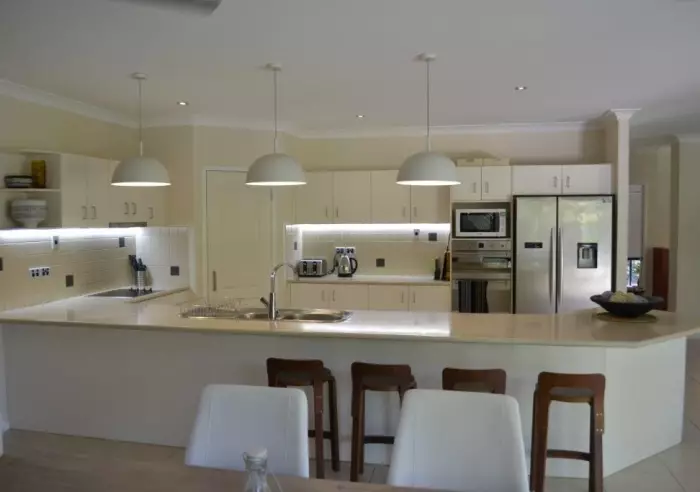 A huge timber door opens up to reveal a foyer with the living areas on one side of the home and bedrooms / bathrooms on the other side. A massive separate lounge area flows onto the kitchen / dining area and an informal sitting room. This whole part of the house merges seamlessly with an undercover outdoor dining area and the pool - a delight in our tropical days and nights.