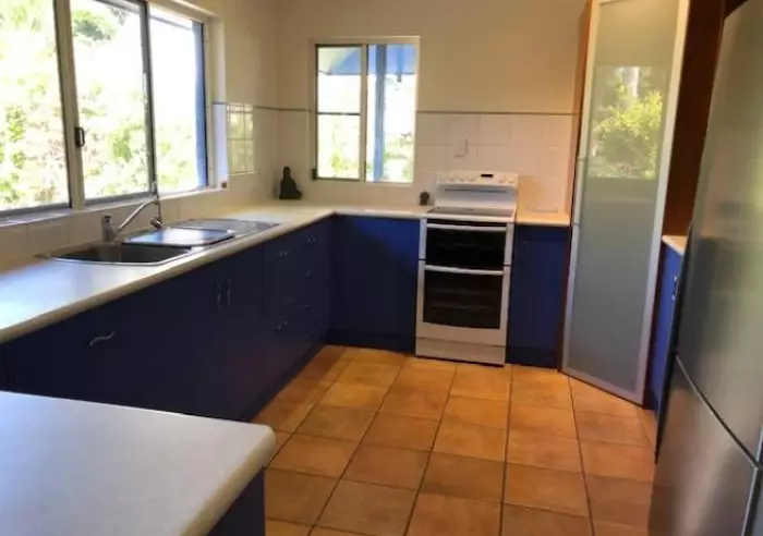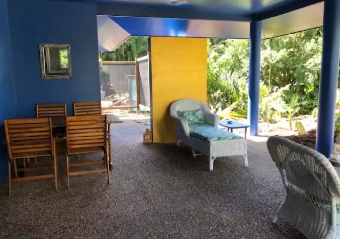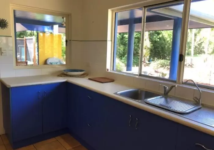 The main bedroom has an outside shower and built in robe and side access to the front patio. The second bedroom overlooks the rear rainforest garden and has a built in robe. Both are spacious, light, have fans and are air conditioned.