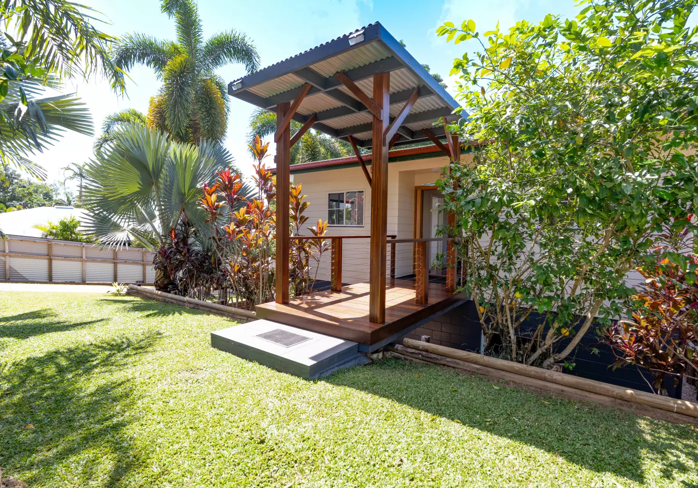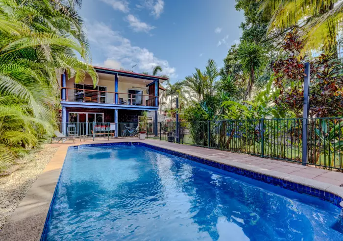 Enjoy relaxing on your deck which overlooks the 10m x 3m pool with side privacy screens. There's a large parcel of land that adjoins the property, you have a back drop of established trees framing your view - very tranquil !  You'll love this quiet street and the daily visits from the wallabies and cassowaries !