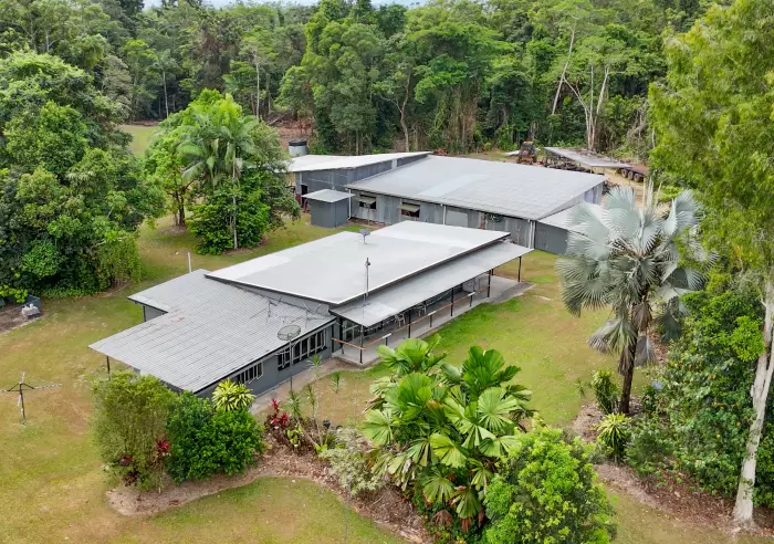The journey into the property is a highlight in itself: a slightly curved driveway meanders through lush rainforest, creating a tranquil ambiance that instantly takes the stress of the day away before you even reach the home.