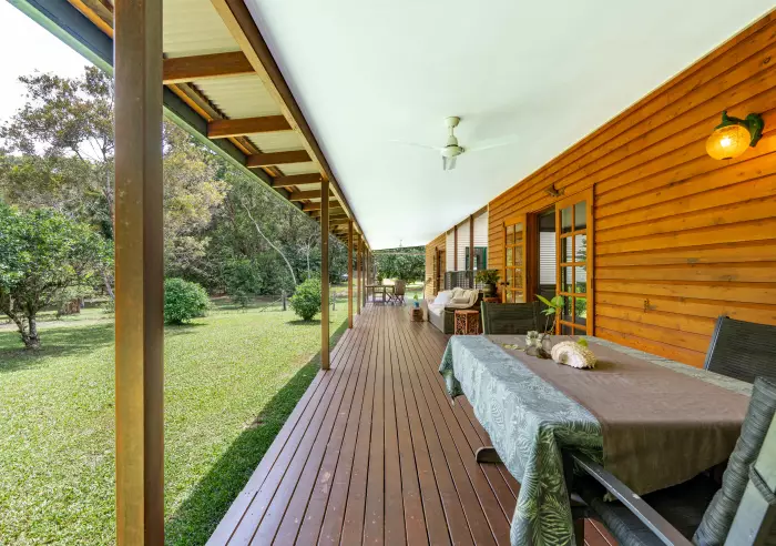 * Cosy home with wide front deck overlooking the property