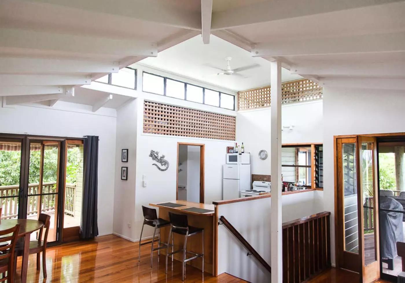 Two storey villa with outstanding views to Dunk, Bedarra and Hinchinbrook Islands. Designed for the tropics, this timber villa has three decks - two facing the ocean and one on the western side of the home.