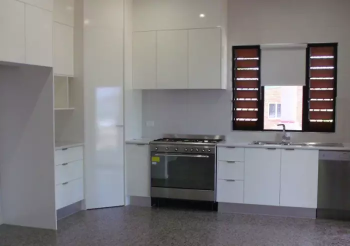 With easy care polished concrete floors throughout, open plan living area and kitchen - Look at the size of that gas oven and cooktop! The dishwasher hasn't been forgotten and there for your convenience also.