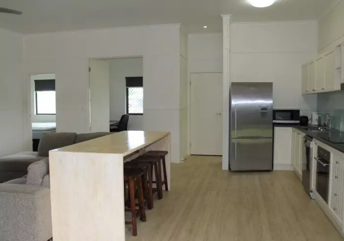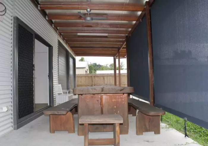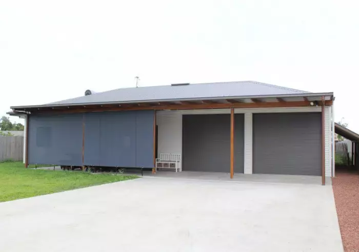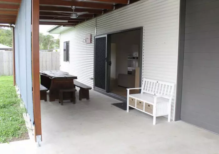 Large covered and insulated front patio in privacy with blinds, open plan living with modern kitchen including all the mod cons. 3 bedrooms all with built-ins plus an over-sized office with permanent benches. Main bathroom, the living area and master bedroom is air-conditioned.