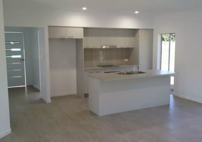 With established but easy care gardens, you are your family will love making this your new home. The portico welcomes you to a contemporary interior - a small hallway with a study/media room draws you into a huge open space with raked ceilings where you'll find the kitchen, dining and lounge area, which then flows out to an undercover patio.