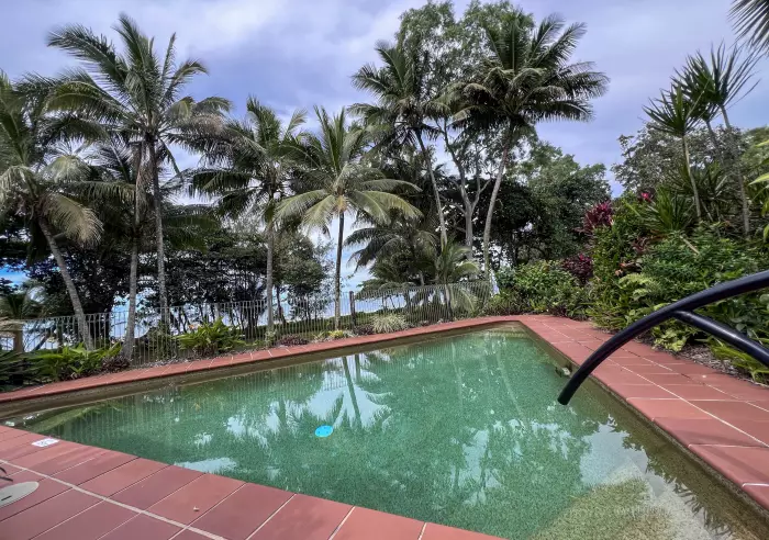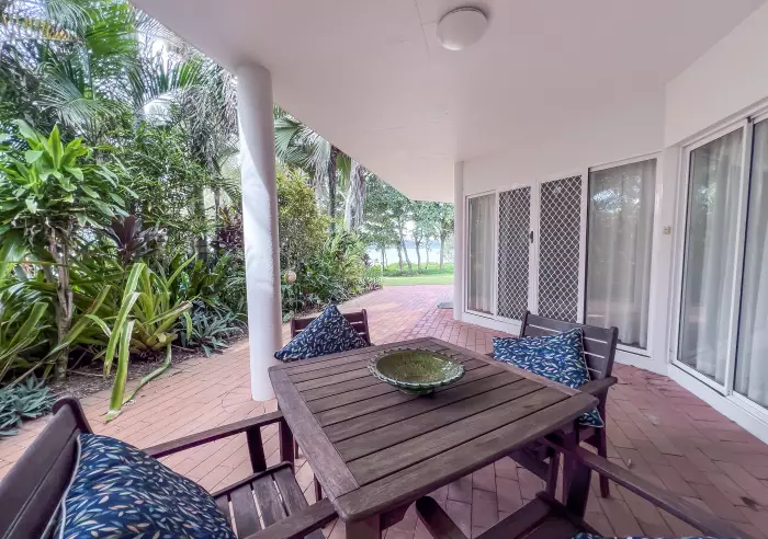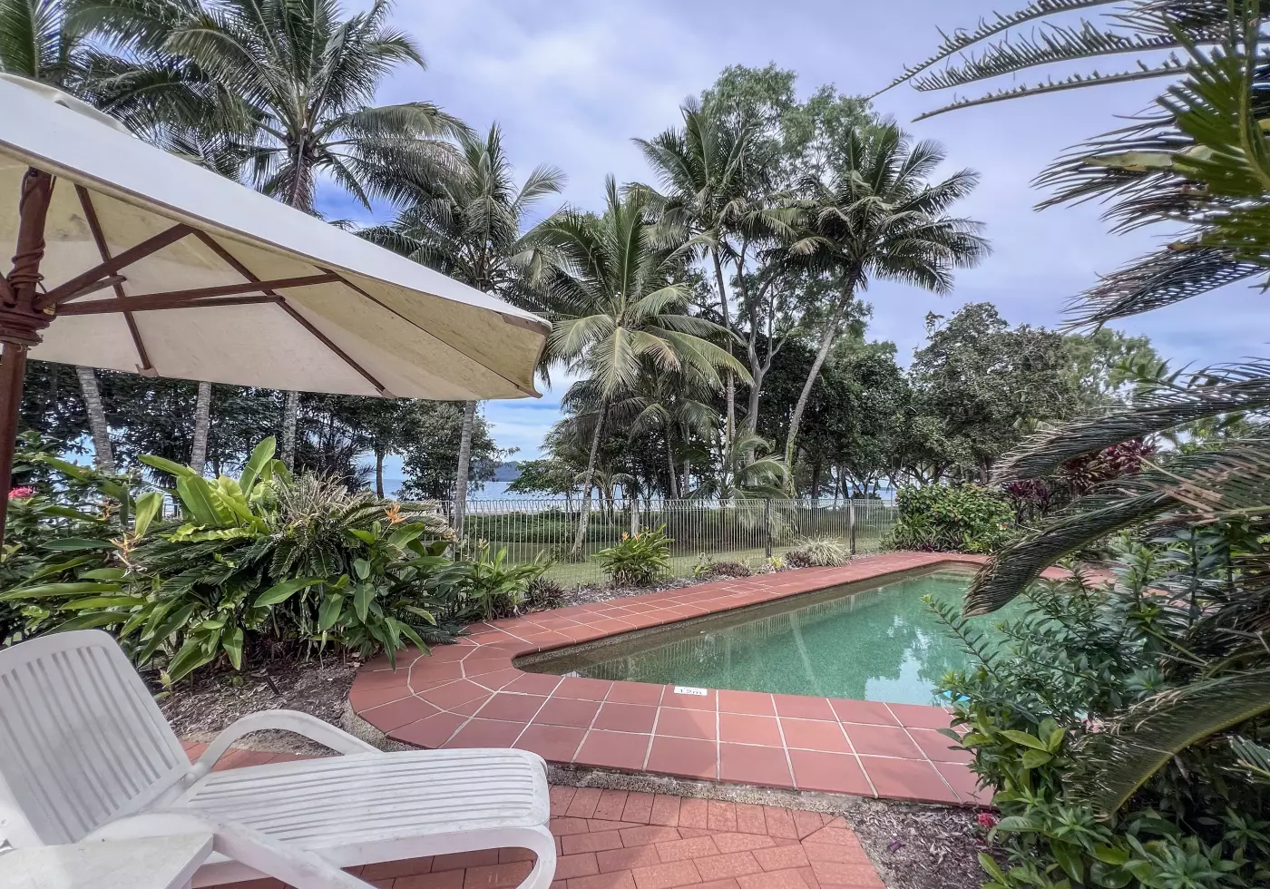 Located on the ground floor the living area is separated from the bedrooms by an outdoor fully covered roofed foyer and tropical garden. The open plan living area overlooks rainforest gardens to the pool and beyond, and across the beach to Dunk Island. Enjoy outdoor dining on balmy days and nights or stroll down the beach for a lovely meal at Spicy Thai .