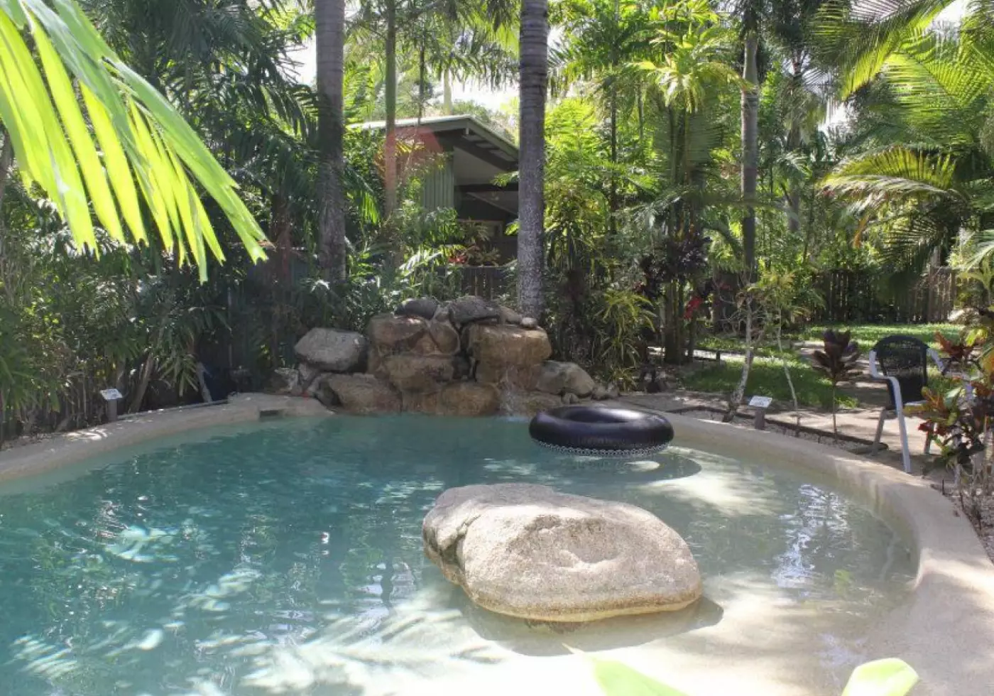 There's 6 in total but this villa, is located at the rear of the property with rainforest views, Open plan lounge with kitchenette, spacious air-conditioned bedroom, main bathroom with spa bath and shared laundry. Even your own private patio with BBQ.