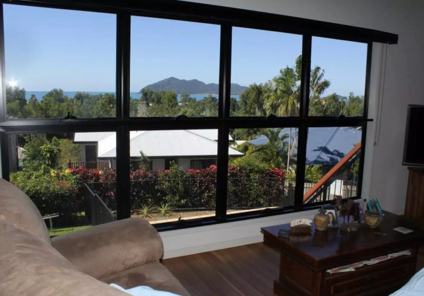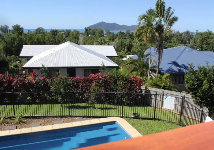 Carved into the side of an elevated block on Dunkalli Cresent, with ocean views towards Dunk Island to the East, and the green rainforest to the south. Enjoy these views from a number of positions in and around the home.